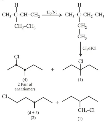 The total number of monohalogenated organic products in the following (including stereoisomers) reaction is _______________.