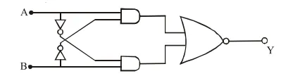 $y=(\overline{\mathrm{A}}+\mathrm{B}) \cdot(\mathrm{A}+\overline{\mathrm{B}})$