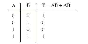 $\mathrm{y}=\mathrm{AB}+\overline{\mathrm{A}} \overline{\mathrm{B}}$