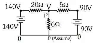 $\therefore$ current in $6 \Omega=\frac{\mathrm{V}-0}{6}=10 \mathrm{~A}$