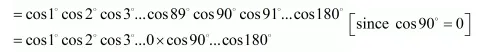 The value of $\cos 1^{\circ} \cos 2^{\circ} \cos 3^{\circ}$ $\cos 180^{\circ}$ is