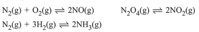 $\mathrm{N}_{2}(\mathrm{~g})+\mathrm{O}_{2}(\mathrm{~g}) \rightleftharpoons 2 \mathrm{NO}(\mathrm{g}), \Delta n_{g}=0$