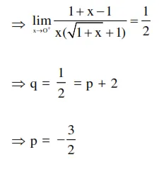 The values of $p$ and $q$ for which the function $f(x)=$ $f(x)= \begin{cases}\frac{\sin (p+1) x+\sin x}{x}, & x<0 \\ q & , x=0 \text { is continuous for } \\ \frac{\sqrt{x+x^{2}}-\sqrt{x}}{x^{\frac{3}{2}}}, & x>0\end{cases}$ all $x$ in $R$, are :-