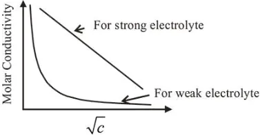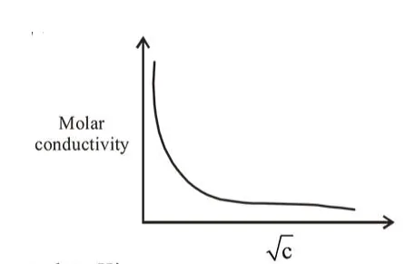 The variation of molar conductivity with concentration of an electrolyte $(X)$ in aqueous solution is shown in the given figure.