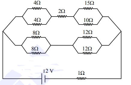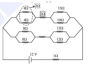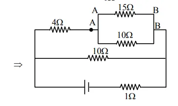 $\Rightarrow$ Hence point drop across $15 \Omega=6$ volt $=\mathrm{V}_{\mathrm{AB}}$