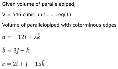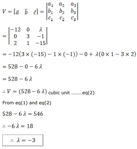 $(2 \hat{\mathrm{i}}+\hat{\mathrm{j}}-15 \hat{\mathrm{k}})$ is 546 cubic units. Find the value of $\lambda$.