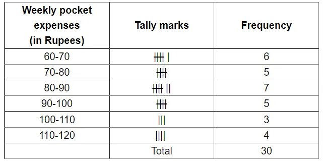 The weekly pocket expenses (in rupees) of 30 students of a class are given below: