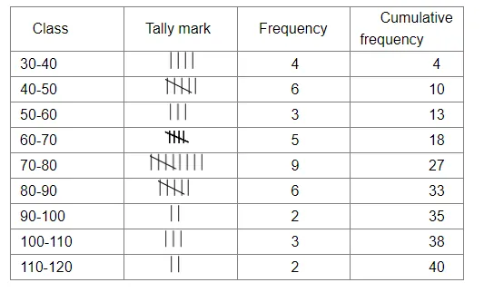 The weights (in grams) of 40 oranges picked at random from a basket are as follows: