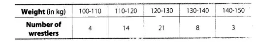 The weights (in kg) of 50 wrestlers are recorded in the following table.