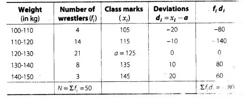 Mean $(\bar{x})=a+\frac{\Sigma f_{j} d_{i}}{\Sigma f_{i}}$
