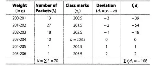 $\operatorname{Mean}(\bar{x})=a+\frac{\Sigma f d_{i}}{\sum f_{i}}$