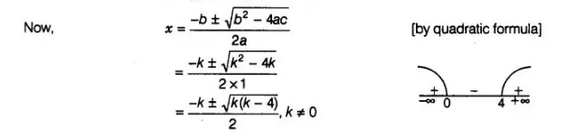 The zeroes of the quadratic polynomial x2 + kx + k where k ≠ 0,