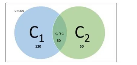 $n\left(C_{1} \cup C_{2}\right)=n\left(C_{1}\right)+n\left(C_{2}\right)-n\left(C_{1} \cap C_{2}\right)$
