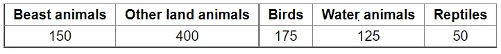 There are 900 creatures in a zoo as per list given below: