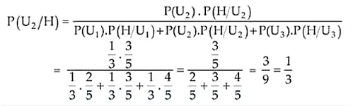 P(H/U1) = 2/5, P(H/U2) = 3/5 and P(H/U3) = 4/5