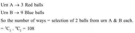 There are two urns. Urn A has 3 distinct red balls and urn B has 9 distinct blue balls.