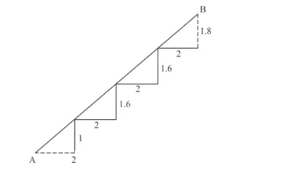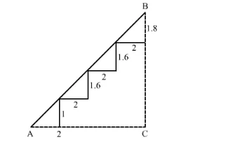 There is a staircase as shown in the given figure, connecting points A and B. Measurements of steps are marked in the figure. Find the straight line distance between A and B.