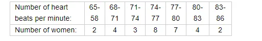 Thirty women were examined in a hospital by a doctor and the number of heart beats per minute recorded and summarised as follows. Find the mean heat beats per minute for these women, choosing a suitable method.