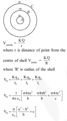 Three concentric metal shells $\mathrm{A}, \mathrm{B}$ and $\mathrm{C}$ of respective radii $\mathrm{a}, \mathrm{b}$ and $\mathrm{c}(\mathrm{a}<\mathrm{b}<\mathrm{c})$ have surface charge densities $+\sigma,-\sigma$ and $+\sigma$ respectively. The potential of shell B is :-