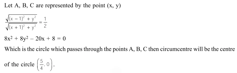Three distinct points $\mathrm{A}, \mathrm{B}$ and $\mathrm{C}$ are given in the 2 -dimensional coordinate plane such that the ratio of the distance of any one of them from the point $(1,0)$ to the distance from the point $(-1,0)$ is equal to $\frac{1}{3}$. Then the circumcentre of the triangle $\mathrm{ABC}$ is at the point :-
