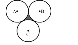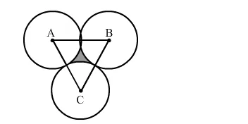 Three equal circles, each of radius 6 cm, touch one another as shown in the figure. Find the area of enclosed between them.