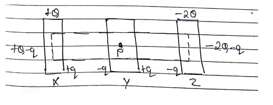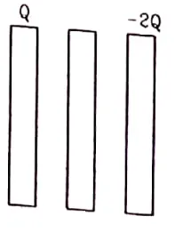 Three identical metal plates with large surface areas are kept parallel to each other as shown in figure. The leftmost plate is given a charge $Q$, the rightmost a charge $-2 Q$ and the middle one remains neutral. Find the charge appearing on the outer surface of the Rightmost plate.
