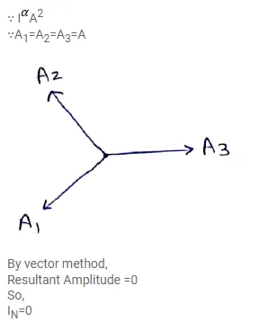 Three sources of sound $S_{1}, S_{2}$ and $S_{3}$ of equal intensity are placed in a straight line with $S_{1} S_{2}=S_{2} S_{3}$. At a point $P_{1}$ far away from the sources, the wave coming from $S_{2}$ is $120^{\circ}$ ahead in phase of that from $S_{1}$. Also, the wave coming from $S_{3}$ is $120^{\circ}$ ahead of that from $S_{2}$. What would be the resultant intensity of sound at $P$ ?