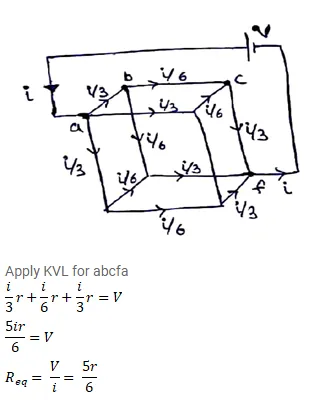 Twelve wires, each having equal resistance $r$, are joined to form a cube as shown in figure (32-E20). Find the equivalent resistance between the diagonally opposite points a and $f$.