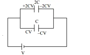 Two capacitors of capacities 2C and C are joined in parallel and charged up to potential V. The battery is removed and the capacitor of capacity C is filled completely with a medium of dielectric constant K. The potential difference across the capacitors will now be :