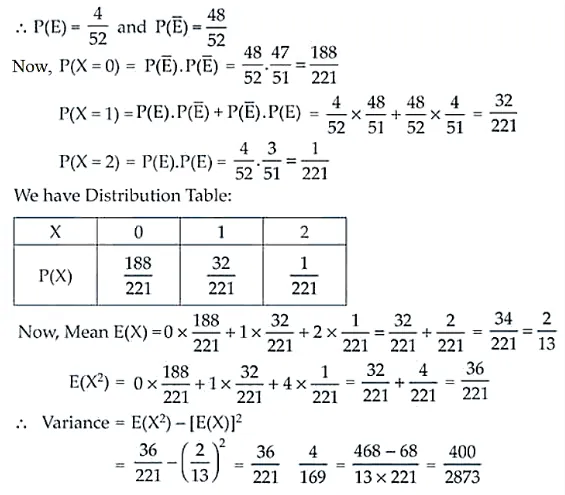 Two cards are drawn successively without replacement from a well shuffled deck of cards. Find the mean and standard variation of the random variable X where X is the number of aces.