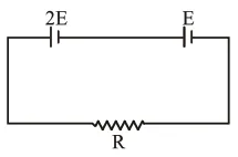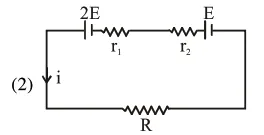 Two cells of emf $2 \mathrm{E}$ and E with internal resistance $r_{1}$ and $r_{2}$ respectively are connected in series to an external resistor $R$ (see figure). The value of $R$, at which the potential difference across the terminals of the first cell becomes zero is