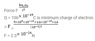 Two charged particles are placed at a distance $1.0 \mathrm{~cm}$ apart. What is the minimum possible magnitude of the electric force acting on each charge?