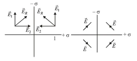 And +ve charge density $\sigma_{+}$is bigger in magnitude so its field along $Y$ direction will be bigger than field of-ve charge density $\sigma_{-}$in $X$ direction. Hence option (3) is correct.
