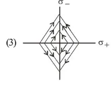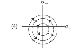 Two charged thin infinite plane sheets of uniform surface charge density $\sigma_{+}$and $\sigma_{-}$, where $\left|\sigma_{+}\right|>\left|\sigma_{-}\right|$, intersect at right angle. Which of the following best represents the electric field lines for this system ?