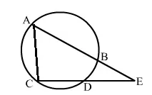 Two chords AB and CD of a circle intersect each other at a point E outside the circle. If AB = 11 cm, BE = 3 cm and DE = 3.5 cm, then CD = ?