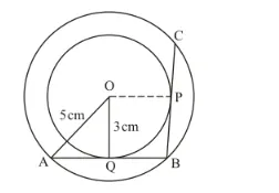 Two concentric circles of radii 3 cm and 5 cm are given. Then length of chord BC which touches the inner circle at P is equal to