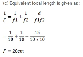 (c) Find the focal length of the equivalent lens. (note that the sign of the focal length is positive although the lens system actually diverges a parallel beam incident on it.)