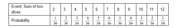 Hence probability of getting the sum of numbers on the dice equal to2 ![]()