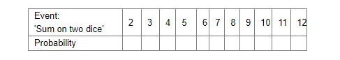 From the above table a student argues that there are 11 possible outcomes $2,3,4,5,6,7,8,9,10,11$ and 12 . Therefore, each of them has a probability $\frac{1}{11}$. Do you agree with this argument?