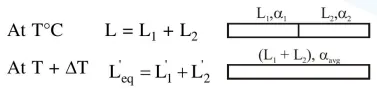 $\Rightarrow \alpha_{\mathrm{avg}}=\frac{\mathrm{L}_{1} \alpha_{1}+\mathrm{L}_{2} \alpha_{2}}{\mathrm{~L}_{1}+\mathrm{L}_{2}}$