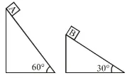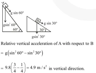 Two fixed frictionless inclined planes making an angle $30^{\circ}$ and $60^{\circ}$ with the vertical are shown in the figure. Two blocks $A$ and $B$ are placed on the two planes. What is the relative vertical acceleration of A with respect to $B$ ?