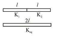 $\mathrm{K}_{\mathrm{eq}}=\frac{2 \mathrm{~K}_{1} \mathrm{~K}_{2}}{\mathrm{~K}_{1}+\mathrm{K}_{2}}$