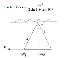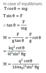 Two identical pith balls, each carrying a charge q, are suspended from a common point by two strings of equal length I. Find the mass of each ball if the angle between the strings is $2 \theta$ in equilibrium.