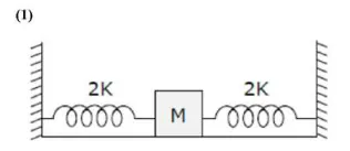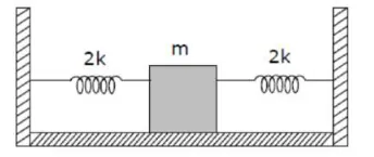 Two identical spring of spring constant '2K' are attached to a block of mass m and to fixed support (see figure).