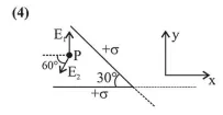 $\vec{E}_{P}=\vec{E}_{1}+\vec{E}_{2}=\frac{\sigma}{2 \varepsilon_{0}}\left[-\frac{1}{2} \hat{x}+\left(1-\frac{\sqrt{3}}{2}\right) \hat{y}\right]$