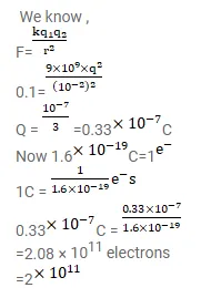 Two insulating small spheres are rubbed against each other and placed $1 \mathrm{~cm}$ apart. If they attract each other with a force of $0.1 \mathrm{~N}$, how many electrons were transferred from one sphere to the other during rubbing?