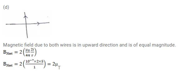 Magnetic field due to wires are of equal magnitude but in opposite direction. So, resultant field $=0$.