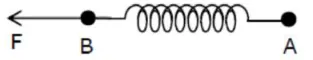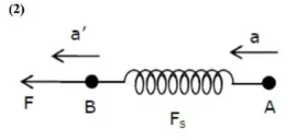 Two masses $A$ and $B$, each of mass $M$ are fixed together by a massless springs. A force acts on the mass $\mathrm{B}$ as shown in figure. If the mass $\mathrm{A}$ starts moving away from mass $\mathrm{B}$ with acceleration ' $\mathrm{a}$ ', than the acceleration of mass $\mathrm{B}$ will be:
