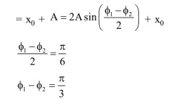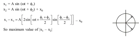 Two particles are executing simple harmonic motion of the same amplitude A and frequency $\omega$ along the $\mathrm{x}$-axis. Their mean position is separated by distance $\mathrm{X}_{0}\left(\mathrm{X}_{0}>\mathrm{A}\right)$. If the maximum separation between them is $\left(X_{0}+A\right)$, the phase difference between their motion is :-