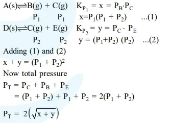 $\mathrm{A}(\mathrm{s}) \rightleftharpoons \mathrm{B}(\mathrm{g})+\mathrm{C}(\mathrm{g}) ; \mathrm{K}_{\mathrm{p}_{1}}=\mathrm{x} \mathrm{atm}^{2}$